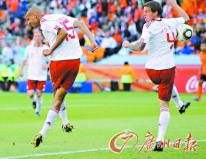 當地時間今天(6月14日)下午,南非世界杯的第9場比賽迎來了本屆世界杯上的第一個烏龍球和第一記補射進球,結果荷蘭隊以2比0完勝丹麥隊,取得了E組第一戰的勝利。隨后進行的E組第2場比賽,日本隊以1比0力克喀麥隆隊。