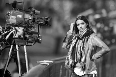 在比勒陀利亞的洛夫斯托球場,除了西班牙和智利這兩支球隊之外,誰最受關注?答案只有一個,那就是西班牙隊長、主力門將卡西利亞斯的女友薩拉,她可不是在看臺上為愛人加油的,而是以電視臺記者的身份,就站在西班牙隊球門后面做直播。