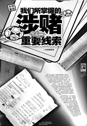 這份線索《遼沈晚報》掌握了3年,為何選擇在此時公諸于眾?對此,郝洪軍說:“3年前,我們3個記者把這份證據交給了足協,謝亞龍、南勇、楊一民進行了接待。也就在2006年初,足協與公安部聯手成立打擊賭球活動辦公室。對我們媒體來說,畢竟不是司法機關,這些線索不能叫證據,交出去(給打擊賭球活動辦公室),是正規的渠道。但是后來沒有了動靜。”