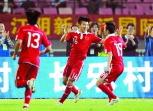 現場球迷的熱情被點燃,“3比0”的喊聲響徹全場。中國隊沒有辜負球迷的期望,替補出場的李學鵬搶斷后突破至對方小禁區內抽射破門,將比分鎖定為3比0。整場比賽,中國隊共出場22名隊員。