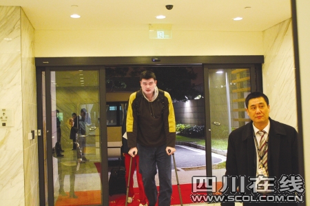 按計劃班機在晚上6點55分抵達,不過飛機誤點了將近半小時,7點20分左右,姚明與葉莉一前一后出現在了機場特地為他安排的貴賓通道。姚明穿著一件咖啡色帽衫,他的左腳還穿著特制的護靴,并仍需拄著雙拐行走,臉上有些疲憊,而葉莉則穿著一件藍色外套,神情要輕松了許多。此前的半年時間,姚明一直在養傷,不久前開始了每天在跑步機上走路的訓練,為的就是這次回國的奔波不會影響自己的恢復,昨天在機場姚明接受采訪時說:“醫生已經可以允許我長途飛行了,現在恢復得不錯,但不能掉以輕心,畢竟是第二次在同一個地方受傷。”