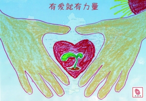 上周日,隊(duì)醫(yī)克蘭頓打電話告訴姚明傷情時,后者正在忙著作畫。缺席季后賽的消息并沒有影響到姚明的畫作。在這幅題為“有愛就有力量”的蠟筆畫中,兩只大手呵護(hù)著一顆紅色的愛心,里面有新芽生出。