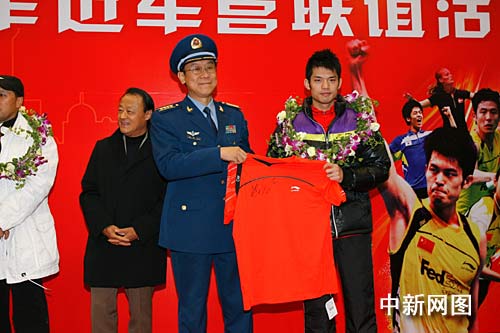而身為軍人的林丹的開場白則是“回家的感覺真好!”,“超級丹”表示,“雖然身為軍人,但是回軍營的時間卻并不多。今天非常高興來到軍營,這身軍裝也提醒著我的職責,要不斷取得好成績來不辜負這一身軍裝。”活動中,林丹和王儀涵將一套中國羽毛球隊專用的李寧羽毛球裝備親手送給駐軍將士。