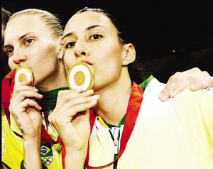 在巴西國家隊,向來都有男女排隊員“內(nèi)部解決”的優(yōu)良傳統(tǒng),比如和謝拉并稱巴西隊最美麗球員的杰奎琳,其夫婿就是巴西男排主攻手穆里諾;而今更有女排隊內(nèi)的“內(nèi)部解決”,且這對情侶在愛情力量的支持下,奧運奪金后依然保持高競技水平、穩(wěn)坐主力位置,從事業(yè)到生活,她們都得到了自己真正想要的。