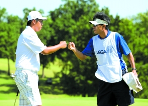 “謝謝爸爸告訴我,一起來美國打高爾夫。一切的辛苦都是值得的。”安秉勛賽后表示感謝父親的支持,“我要努力贏得更重大的比賽!倍瞳@得冠軍一樣讓他高興的是,10天之后媽媽將飛來與他見面。鐘文