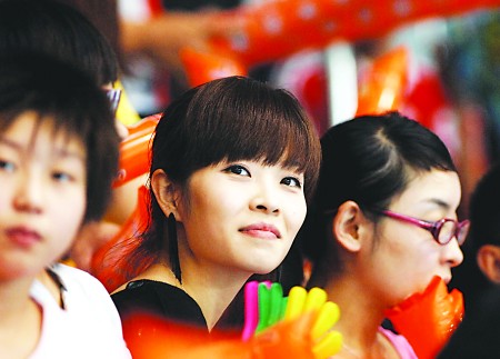 由于現場觀眾實在是太熱情了,有人中途“劫走”了這束鮮花。這多少讓王丹有些失望。不過,很快有人將亞軍何沖扔上來的鮮花交到她手中,王丹臉上又露出了笑容。