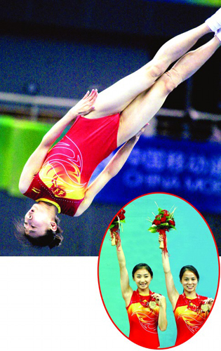 從決賽觀眾席幾乎滿員的情形就可得知,女團決賽的賽場依然是何雯娜表現的舞臺。隨著播音員叫出“何雯娜”這個名字,整個賽場響起了熱烈的掌聲。對于預賽中的發揮欠佳,何雯娜曾表示,那是由于奧運會之后沒有參加過什么大賽太過緊張所致,而經過一天的調整,她顯然已經克服了緊張情緒。決賽中的唯一一套動作,何雯娜完成得如行云流水一般,既舒展又輕盈。最終,何雯娜的這套動作贏來了38.80的高分。興奮地揮了揮手,何雯娜滿意地下了網。而接下來老將黃珊汕的上場再次將福建隊與其他隊的差距拉大,結果,實力強大的福建隊毫無懸念地獲得了全運會三連冠。