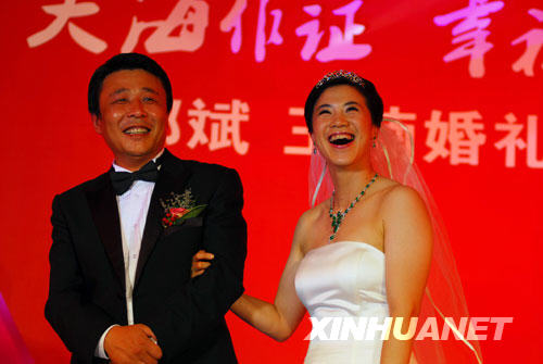 9月27日,王楠與丈夫郭斌在婚禮現場。新華社發(初陽 攝)