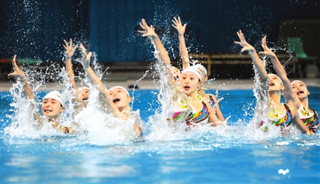 伴隨著悠揚的樂曲,水花蕩漾中美麗的“川花”姑娘翩翩起舞……昨晚,即將出征全國錦標賽的四川花樣游泳隊在四川省游泳館進行了公開彩排,不少市民前來觀看,與這支美麗的花泳隊來了個近距離接觸。