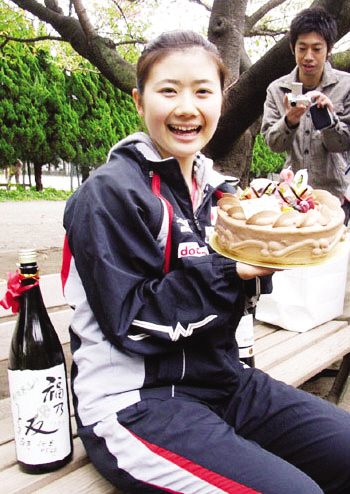 面對眾人送上的蛋糕,福原愛高興地接受了,但對來賓們“整蠱”似地送上的日本清酒,單純可愛的福原愛并不為所動,“雖然我出生在釀酒世家,但從小就對含有酒精的清酒味道相當抵觸。盡管作為一名成年人可以喝酒了,但我卻依然會堅持滴酒不沾的原則,包括抽煙也一樣,絕對不會去碰。”福原愛的祖輩都是釀酒的行家里手,據說她的父親福原武彥更是酒量驚人。