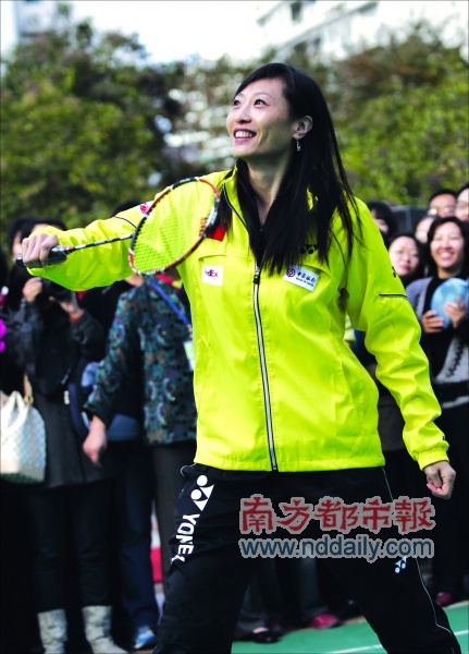 早上9時(shí)半,張寧與蔡赟、付海峰、韓晶娜便作為羽毛球世界冠軍代表出現(xiàn)在上海浦東社區(qū),參加“世界冠軍進(jìn)社區(qū)”的羽毛球推廣活動(dòng),還與社區(qū)代表打起了雙打?qū)官悺;顒?dòng)結(jié)束不久,午后1時(shí)半,張寧已變換了身份,坐在中國隊(duì)女單組訓(xùn)練場邊的教練席上正式開始了她第一天的工作。