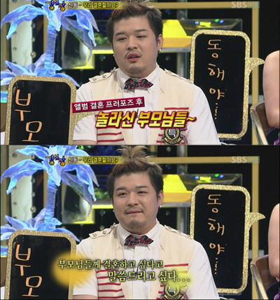 最后,神童還在節目中對女友求婚,他表示:“只要有你在身邊,我就感覺很幸福。能和我永遠幸福下去嗎?請嫁給我吧!”神童突然求婚,讓Super Junior其他成員都一臉驚訝。
