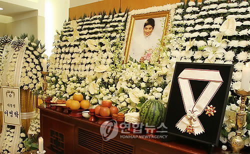 韓國總統(tǒng)室室長任太熙于13日下午5時許前往設置在首爾蓮建洞首爾大學醫(yī)院的靈堂,代替李明博總統(tǒng)向故人授予了金冠文化勛章。