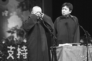 演出在當晚7:30左右開場,郭德綱和于謙都身穿傳統長衫出場,笑容滿面,開場白是:“感謝在座的衣食父母。”全場掌聲響起。在當晚演出中,郭德綱和于謙一共說了四段經典作品,并且在觀眾一再要求下,返場了五次。郭德綱一向擅長拿真實事件“砸掛”。在返場中,郭德綱就用“保羅”和于謙父親串聯了起來,讓現場笑聲不止。除了郭德綱和于謙二人的表演,在近3小時的整場演出中,還有多名弟子上臺演出,但并無知名度較高的弟子出現。演出結束后,一群“綱絲”仍舊不愿離場,留在門口想與郭德綱合影簽名,并且打出橫幅支持郭德綱。面對觀眾如此熱情,郭德綱也是感慨道,“我能力有限,就會說個相聲,只要大家喜歡,我們就愿意給大家帶來快樂。”據了解,本場演出所有低票價已經在一周之前全部售出,而最高門票也是所剩無幾。在離開場還有一個鐘頭的時候,黃牛黨都聚集在售票處,但并不是出售門票,而是收門票。當記者向黃牛黨打聽票價時,得到的回答只有“沒票,你有票賣嗎?”(王少文)