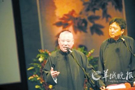 郭德綱在弟子打傷記者事件爆發后,消失了十多天,本月14日晚終于在北京公開亮相。“郭德綱·于謙合作十周年相聲專場”系列演出當晚在北京北展劇場舉行,郭德綱率德云社弟子岳云鵬、孔云龍等輪番上場。14日、16日兩場演出,4800個座位全部爆滿。郭德綱接受記者訪問時表示,自己不會退出娛樂圈,德云社也不會關門。