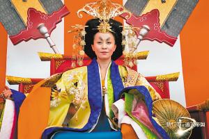 片方昨天公布的幾款劉嘉玲造型中,最引人注目的是武則天在練兵場的女皇造型。片中狄仁杰第一次覲見武則天時,她正在檢閱當年武狀元科舉考試,為了突出一代女皇的威風凜凜,片中場景及化妝、服裝都極盡奢華之能事。