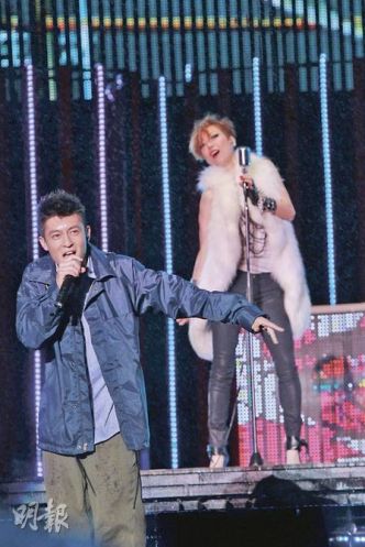 中新網10月25日電 陳冠希相隔兩年半再復出舞臺演唱,前晚在上海《東亞飛揚演唱會》獲得歌迷熱情支持,不斷有人叫他的名字,歡呼聲不絕。他在臺上演唱兩首新歌,分別與鄭秀文、黃秋生及農夫合唱,不僅沒有怯場,而且表現投入。