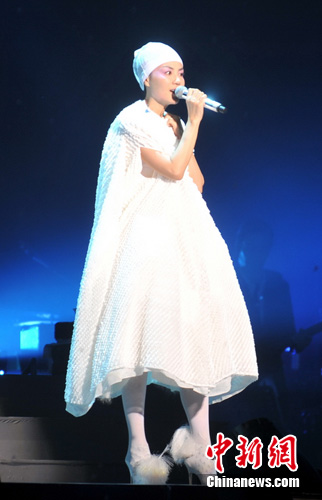 王菲北京開(kāi)唱造型搶眼 雪白長(zhǎng)袍出場(chǎng)(組圖)