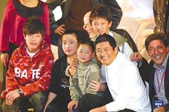 有男記者站了起來,問發(fā)哥和喬納森的“愛”有什么不同?其實(shí)他指的是兩人對待女主角的不同態(tài)度。不知道發(fā)哥是故意的還是真的沒聽懂,居然回答:“我們是友情之愛啊,這就是大愛,我也挺愛你的。”弄得該男記者哭笑不得。現(xiàn)場也請來了幾個(gè)影片中出演流浪兒的小孩,其中一個(gè)8歲大的小孩很可愛,也不怕大場面。發(fā)哥一把將他抱在懷里。主持人問他看過發(fā)哥的經(jīng)典影片沒有,小孩說出來的第一部影片居然是《賭神》。發(fā)哥坐不住了,干脆自己來問:“你喜歡表演嗎?”“喜歡”。“你喜歡跟我一起表演嗎?”“喜歡”。“那你喜歡以后演得比我更好嗎?”“更喜歡”“……你可以走了”。下面又是一陣大笑聲。