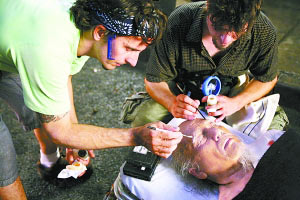 即將上映的《功夫之王》中成龍的80歲老年扮相日前曝光。片方透露,是好萊塢的逼真技藝成就成龍的老人造型。透過縷縷白發和絲絲皺紋,電影中的成龍老態畢現,足以以假亂真。每天扮相幾個小時,讓成龍吃足了苦頭。