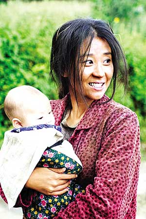 還有櫻桃為紅紅送傘的戲,一路上,無數(shù)次跌下梯田的田埂,卻又堅(jiān)強(qiáng)地爬起來,好不容易到達(dá)了學(xué)校,站在雨中,那樣純真無邪地笑著看著紅紅,眼中不帶任何雜質(zhì)。即使沒有語言,僅僅一個(gè)微笑,已讓人感動(dòng)淚流。