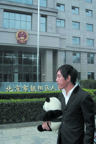 “我就不明白了,熊貓怎么會是綠色眼睛?夢工廠必須給我作出解釋!……”趙半狄頭頂熊貓,手拿起訴書,以及法院的受理號,理直氣壯地站在朝陽區人民法院的門口,和他的委托代理人站在一起,“咔嚓”了好幾張照片,都貼進了他的博客。