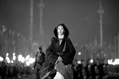 《赤壁(下)》最后一幕,曹操挾小喬立于危樓之上。就在這千鈞一發之際,趙子龍借手中銀槍之力,一躍而起,幫助周瑜救下愛妻。趙子龍“撐桿跳”的姿勢堪比專業運動員,媒體戲言趙子龍的飾演者胡軍可以去參加奧運會,胡軍表示,這還得益于吳宇森導演的安排。
