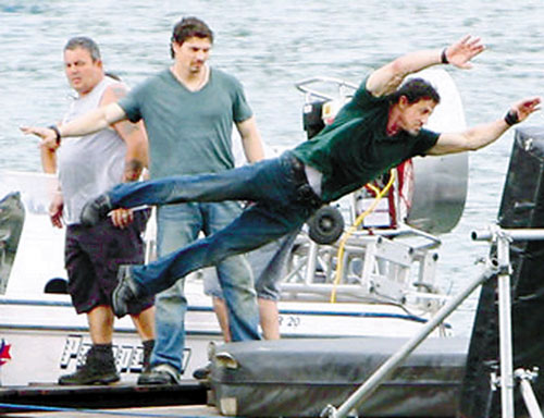 西爾維斯特·史泰龍自編自導(dǎo)自演的新作《敢死隊(duì)》昨日曝光了片場(chǎng)照。現(xiàn)年62歲的史泰龍依舊以硬漢造型亮相,上演了一出狂追水上飛機(jī)的動(dòng)作戲。堅(jiān)持親自上陣不用替身的他說(shuō):“我必須沿著碼頭去追趕那架水上飛機(jī),然后跳進(jìn)去,那種感覺(jué)就像被卡里特娜颶風(fēng)吸了進(jìn)去。” (王文)