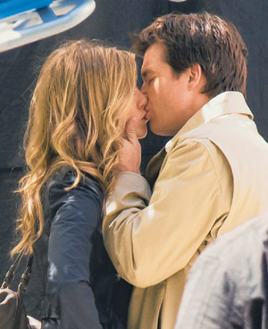 據臺灣《聯合報》報道,安妮斯頓正緊鑼密鼓的趕拍新片“The Baster”(播種愛情),27日當天在紐約街頭的拍片現場,安妮斯頓和男主角杰森·貝特曼不但在眾目睽睽下,2人先是浪漫的擁抱,接著上演了一場甜蜜的吻戲,兩人不愧都是硬底子演員,這場擁吻戲拍得相當自然,讓旁人都感受到幸福感。