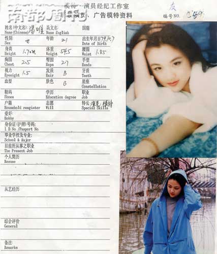 湯唯的前經紀人竺明至今難忘她第一次見到湯唯的那個下午,19歲的湯唯陪著同學來他的文化經紀公司面試,結果被錄取的卻是“無心插柳”的湯唯。“她的條件非常不錯,給人的感覺很清爽、很陽光、很豪爽,見了會讓人眼前一亮,大大咧咧的,有男孩子個性。健康、陽光、充滿朝氣,這感覺就像一個運動員。”