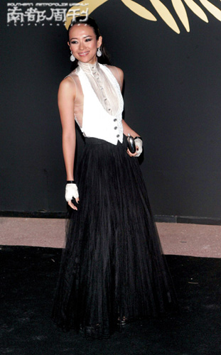 章子怡的知名度和身段,已經(jīng)晉升國際大明星的平臺(tái),但凡出席紅地毯秀,她的表現(xiàn)極少會(huì)讓攝影師們失望。紅地毯多年來恪守著一個(gè)“不出錯(cuò)”的大原則,既大方得體又驚艷性感,而2007章子怡在威尼斯的這套著裝則給紅地毯帶來了驚喜,男士雞尾禮服的元素變化,令人想起80年代阿瑪尼的“權(quán)力套裝”(power-suit)與40年代好萊塢黃金時(shí)代的大墊肩,黑白色彩簡(jiǎn)潔而經(jīng)典,雪紡裙裝令整個(gè)硬朗的設(shè)計(jì)得到中和,很好地表現(xiàn)了章子怡的野心和她現(xiàn)今在娛樂明星中的地位。