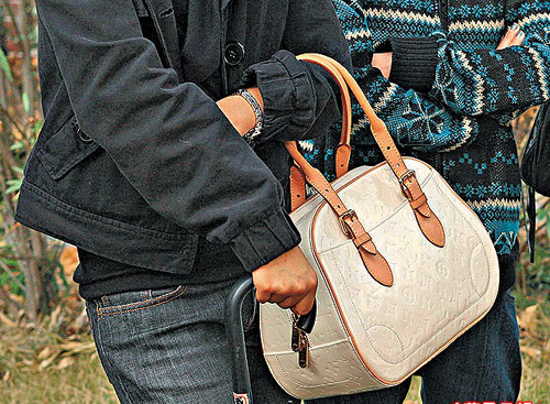 張雨綺前日拍廣告時,工作人員替她拿一個白色LV手袋,發現該LV手袋是A貨,且十分殘舊,袋底已有甩皮情況出現