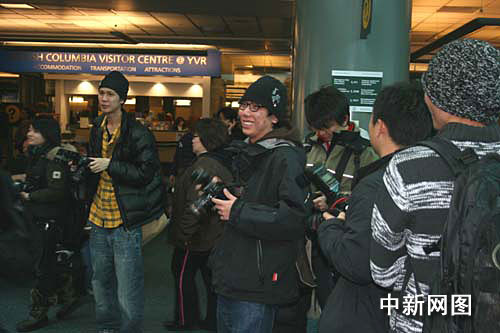 溫哥華當(dāng)?shù)孛襟w和香港來的五十多位記者一早守候在機(jī)場抵達(dá)出口,但未能“接到”同機(jī)而來的沈殿霞女兒鄭欣宜。中新社記者 呂振亞 攝