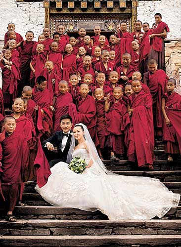 至于婚禮地點,更讓大家想破頭,從一開始的香港峇里島、泰國小島通通猜錯,婚禮前一個星期才知道是在佛教小國不丹,讓很多媒體根本來不及申請簽證。