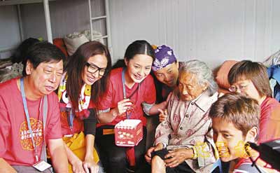 據(jù)香港文匯報(bào)報(bào)道,鐘欣桐、鄭希怡和李逸朗前日以英皇慈善基金成員身份,出席在四川擂鼓鎮(zhèn)舉行的“英皇擂鼓心連心關(guān)愛賀中秋”探訪活動(dòng)。身著紅色T恤、牛仔褲和靴子的阿嬌,看起來很精神。他們一行三人先到一位婆婆的家探訪,和婆婆傾偈之余又為她按摩,原來婆婆的十名親人在早前的大地震死去,只剩下一個(gè)孫女,他們離開婆婆的家時(shí),對(duì)方又送他們花生,當(dāng)被拒絕時(shí),婆婆實(shí)時(shí)落淚,阿嬌和鄭希怡就借機(jī)引開婆婆的注意力,讓李逸朗把花生放回婆婆家中。