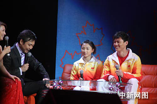 北京奧運冠軍仲滿、何雯娜在演出現場與觀眾互動。