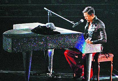 此外,他還苦練2個月鋼琴,展現動靜皆宜的誠意,他說:“我每天半夜洗完澡后練琴,是拚命記下來的!钡巴沓鯊棥度砜凇窌r,因太緊張頻出錯,他說:“后面彈不好,干脆重來好了!睕]想到他重彈了5遍,最后說:“彈鋼琴好難喔!你們以為我是周杰倫啊!”流露可愛一面。但他的國語隨緊張變得更不輪轉,他苦笑:“我好緊張!國語一直打‘折’!碑攬霰桓杳约m正是打“結”,他說:“我又回到18年前,我錯了。”