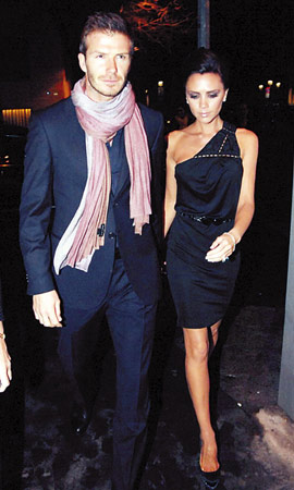 1月19日晚,貝克漢姆夫婦在米蘭一同外出吃晚餐,小貝穿著暖和,戴著厚厚的圍巾。和老公相比,辣妹則選擇美麗“凍”人,大冬天穿著斜肩短裙,而且神情自若。