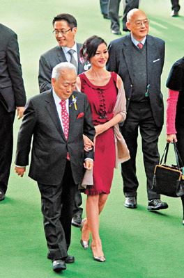 昨日許世勛共有三匹愛(ài)駒賞惑、勁惑和創(chuàng)惑出賽,年初二缺席許家開(kāi)年飯局的嘉欣悉心打扮陪伴老公和老爺奶奶到馬場(chǎng)觀賽。一身紅裙襯黑外套的嘉欣,昨午約12時(shí)半與亨亨及老爺奶奶抵達(dá)馬場(chǎng),她笑容滿面,腹部微隆。之后嘉欣等一行四人先走進(jìn)會(huì)員廂房,逗留一會(huì)后再齊齊步行至馬匹亮相圈。記者直指嘉欣肚凸凸似有孕時(shí),嘉欣未有回答,只是“哈!哈!哈!”笑了三聲。記者再指其腹部比以前大時(shí),嘉欣笑道:“我肥了!”