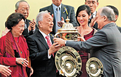 此外,身為亨亨前岳父的賭王何鴻燊,昨日巧合地現身馬場,與嘉欣撞到。問賭王是否覺得嘉欣肚凸似有喜?他風趣地說:“不知道是不是(有孕)嘍!我不會望女仔的肚子。”