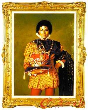 拍賣物品中有不少都像是一個國王的行頭。有一幅杰克遜的肖像油畫,他打扮得像個國王,創作于1995年,鑲嵌精致的金色畫框。市場估價在4000~6000美元。一件紅色的天鵝絨斗篷,帶著奢華的白貂皮領、金色的飾帶、金色十字勛章,估價雖然只有300~500美元,但讓人不由想起國王加冕儀式中的裝束。還有一個皇冠形胸針,不過鑲嵌的都是人造寶石,估價只有80~120美元。
