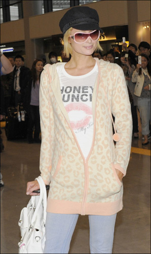 話題女王帕麗斯·希爾頓再次甜美出擊,這次去日本東京為自己的產(chǎn)品做宣傳的帕麗斯·希爾頓甜美無比,黑色的畫家帽歪帶,粉色邊框的墨鏡搭配嫩嫩的粉色開衫外衣和最流行的嘴唇印記短袖衫,甜美的像是17 18歲的少女。看到剛剛過完28歲生日的帕麗斯·希爾頓還要繼續(xù)可愛下去。