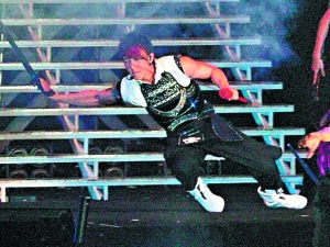 飛輪海首次踏上香港紅館舉行演唱會,可惜2月27日的首場演出就錯漏百出。汪東城(大東)撞毀圍欄險些跌下臺;炎亞綸自彈自唱跟不上節奏;吳尊用單手吊鋼絲飛入場時跌傷腳,表演耍劍時又弄斷了劍,以致辰亦儒取笑他說:“每次彩排都覺得很危險,他的功力一天比一天強。”不過,歌迷對此照單全收,從開場到結尾都接近失控狀態,不停瘋狂叫囂支持偶像。演唱會結束時,歌迷才發現吳尊爸爸也在現場,立刻蜂擁而上爭相合照。據悉,吳尊的傷勢不輕,演唱會結束后他在工作人員陪同下到醫院照X光檢查,發現左腳跟骨裂,估計要兩個月才能愈合,故他兩星期內不可跳舞及跑動。