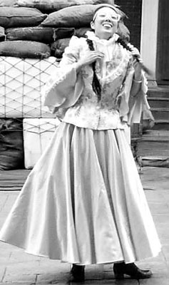橫店廣州街上新上演的這出特技真人秀《大話飛鴻》講述了黃飛鴻、十三姨與邪惡勢力斗智斗勇的故事。為救出被海盜劫持的良家婦女,“十三姨”不惜自毀容貌,裝扮成了“丑女無敵”深入敵穴。當(dāng)海盜們處心積慮地?fù)尳倭艘晃粍倓傋呦禄ㄞI的新娘,滿懷期待地掀開紅蓋頭時,卻被丑得觸目驚心、兇悍如河?xùn)|獅的“十三姨”當(dāng)場雷暈。叉腰劈腿爆粗口的“十三姨”讓眾海盜氣得直喊“退貨”,此時“黃飛鴻”閃亮登場,用一連串必殺技把不知所措的海盜們打翻在地。