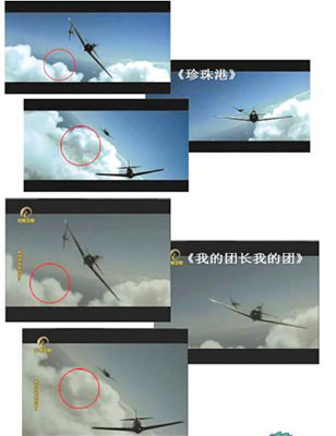 《團(tuán)長》的一個(gè)飛機(jī)爆炸畫面,大量細(xì)節(jié)與《珍珠港》類似,只是爆炸地點(diǎn)從地面附近變換到云層中。