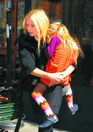 昨天,奧斯卡影后格溫妮斯·帕特洛帶著女兒和兒子,到紐約的“Build-a-Bear”玩具店為孩子們選購(gòu)?fù)婢摺M蝗话l(fā)現(xiàn)狗仔偷拍,格溫妮斯低頭垂下金發(fā)遮擋自己的臉,女兒則偎依在她懷中,用手死命捂住自己的臉。