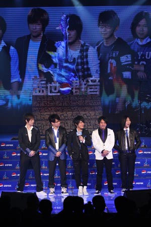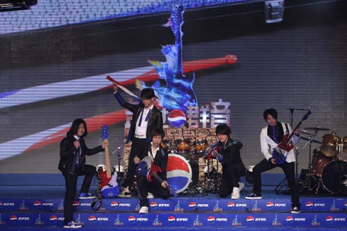 中新網3月31日電 3月31日,由百事公司旗下知名品牌“百事可樂”主辦的“蓋世群音”百事樂隊大賽啟動式新聞發布會,在北京D-PARK時尚設計廣場登場。于2日前剛開完成軍十周年演唱會的亞洲第一天團“五月天”以“蓋世群音”百事樂隊大賽活動大使身份接過領軍大旗,尋找一支有理想、有才華、會創作、敢突破的“明日天團”。