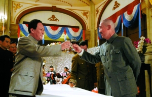 雖只有一場戲、三句臺詞,但身著深藍色軍裝的李連杰依然一絲不茍地拍了不下5條。據李連杰介紹,他扮演的陳紹寬原是國民黨海軍上將,在抗日戰爭中立下汗馬功勞,但不愿參加內戰,“中國人打中國人?這事我做不得”,最后向蔣介石遞交辭呈,“卸甲歸田,回福建養老去”。李連杰片酬高達上千萬美元,但零片酬參與該片一方面是感謝中影集團長期對壹基金的支持,另外一方面他也認為“陳紹寬反戰挺像我的,我也是個愛好和平的人。”另外,他還透露《建國大業》上映后,每張電影票將有1分錢進入壹基金。