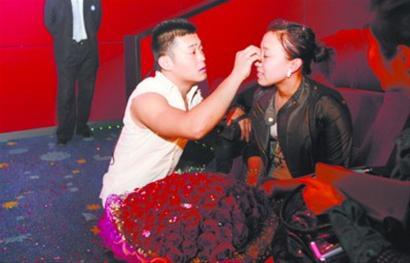 等情緒穩定下來,記者獨家專訪了毛毛。毛毛仔細回想了一下這幾天男友的表現,說她最近發現王金龍行為有點怪,接電話的時候總是偷偷摸摸的,她一問是誰,王金龍就隨便找個理由給搪塞過去!敖裉焖艺f要去補拍婚紗照,我就覺得有點兒不對勁,婚紗照早就弄好了啊,為什么還拍呢?也不知道他要干什么。 ”盡管這樣,一向對男友言聽計從的毛毛還是相信了男友,跟著他出了家門。毛毛說,就在大屏幕上出現王金龍的時候,她一下子就蒙了,怎么都不敢相信眼前的一切!拔乙郧爸辉陔娪半娨晞±锟吹竭^求婚的場景,我沒想到自己也能經歷一次這么浪漫的過程。剛才我腦子里一直在想我們倆人在一起的場景,一幕一幕的,真的很感動。 ”