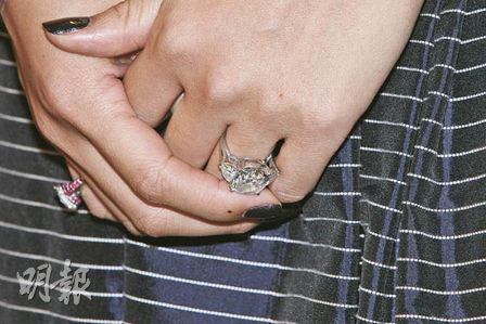據香港《明報》報道,章子怡專程赴港參加代言活動,她穿著價值7000元(港幣,下同)的吊帶衫裙,左手無名指繼續戴上她最愛的10克拉巨型鉆戒,右手尾指亦戴上另一款巨型鉆戒,再配以鉆石手鏈大曬幸福貴氣。貴為國際影星的她,全程戴上太陽眼鏡,由她現身到訪問結束離開,只有10分鐘時間,而她身邊除經理人、助手外,還有10名保安護駕,盡顯大明星風范。活動于中午舉行適值午飯時間,吸引好多市民駐足觀看。